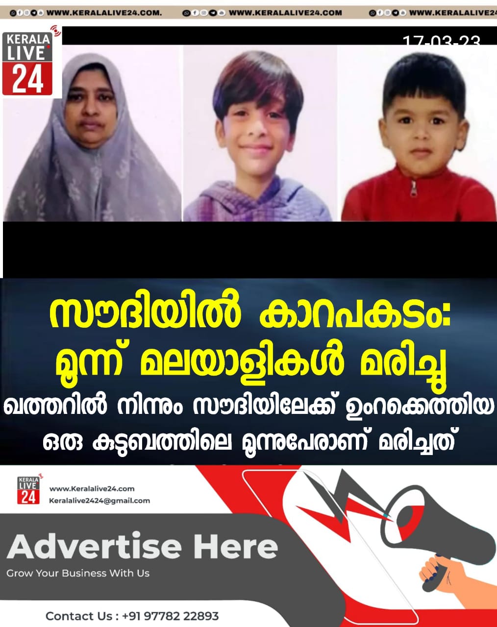 സാബിറ അബ്ദുൽ ഖാദർ (55), അബിയാൻ ഫൈസൽ (6), അഹിയാൻ ഫൈസൽ (3) എന്നിവരാണ് മരിച്ചത്.പാലക്കാട് പത്തിരിപ്പാല സ്വദേശി തോട്ടത്തിപ്പറമ്പിൽ ഫൈസൽ അബ്ദുൽ സലാമിന്റെ കുടുംബമാണ് അപകടത്തിൽ പെട്ടത്. ഖത്തറിലെ ഹമദ് മെഡിക്കൽ സിറ്റിയിൽ ജീവനക്കാരനായ അബ്ദുൽ സലാമിന്റെ മക്കളായ അബിയാൻ ഫൈസൽ (7), അഹിയാൻ ഫൈസൽ (4) എന്നിവരും ഭാര്യാ മാതാവായ സാബിറ അബ്ദുൽ ഖാദർ (55)മാണ് മരിച്ചത്.