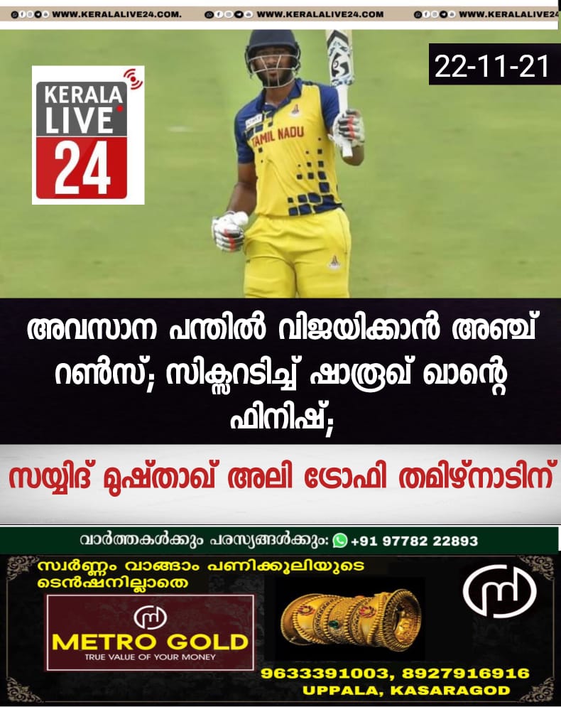 സയ്യിദ് മുഷ്താഖ് അലി ട്രോഫി തമിഴ്നാടിന്. തുടർച്ചയായ രണ്ടാം തവണയാണ് തമിഴ്നാട് കിരീടം നേടുന്നത്.