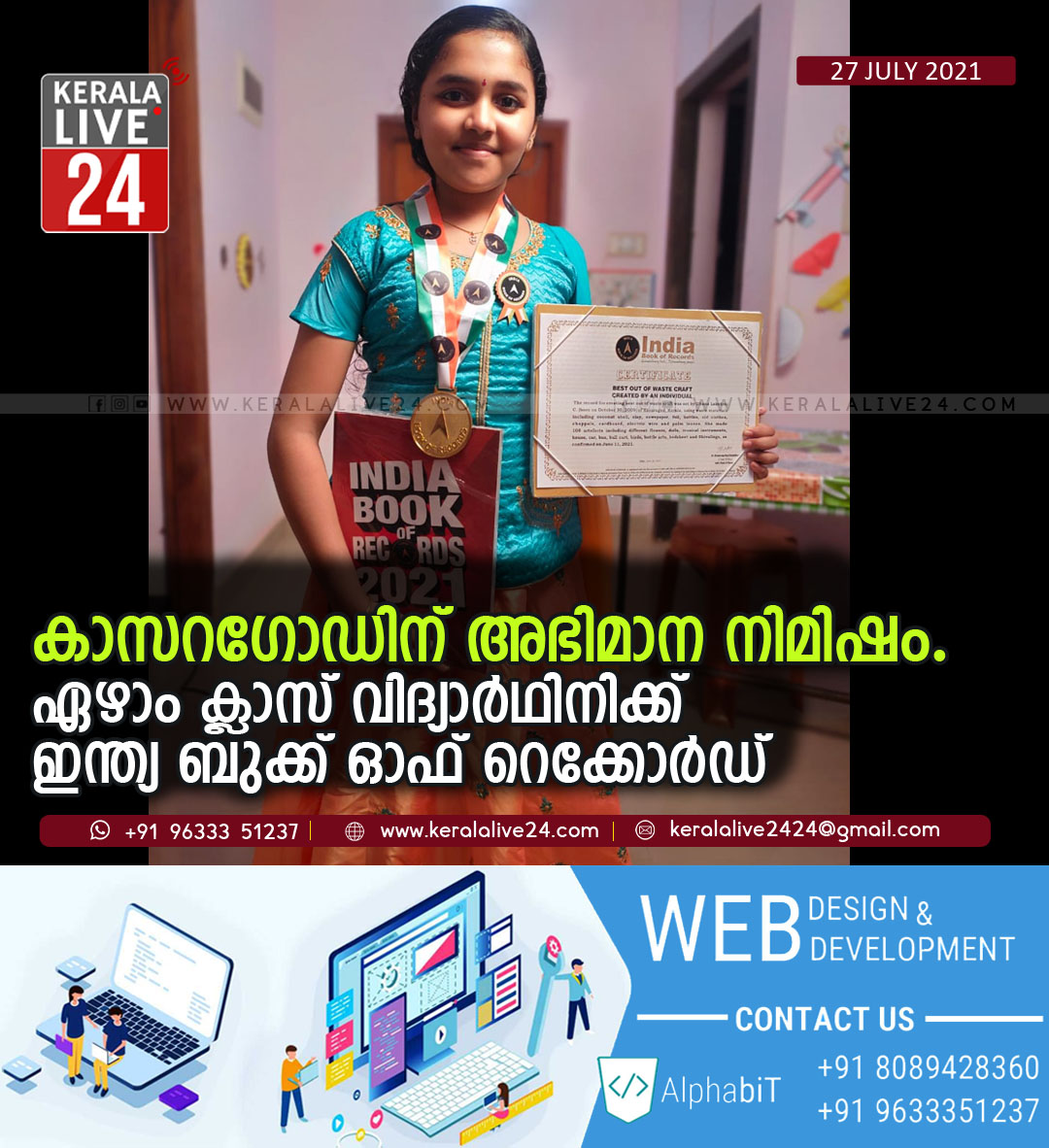 ചെറുവത്തൂര് വലിയപൊയില് ജിയുപിഎസ് നാലിലാംകണ്ടം ഏഴാം ക്ലാസ് വിദ്യാര്ഥിനി ധനലക്ഷ്മി സി. ബിനോയ് ഇന്ത്യ ബുക്ക് ഓഫ് റെക്കോര്ഡ് വിന്നര്.
